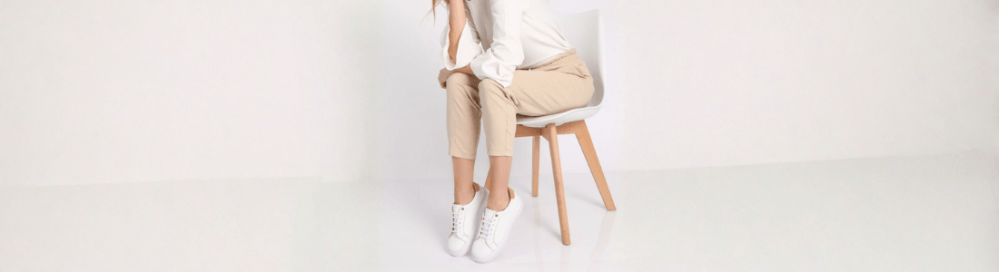 O tênis branco com alfaiataria é o modelo mais versátil e combina com praticamente qualquer roupa.